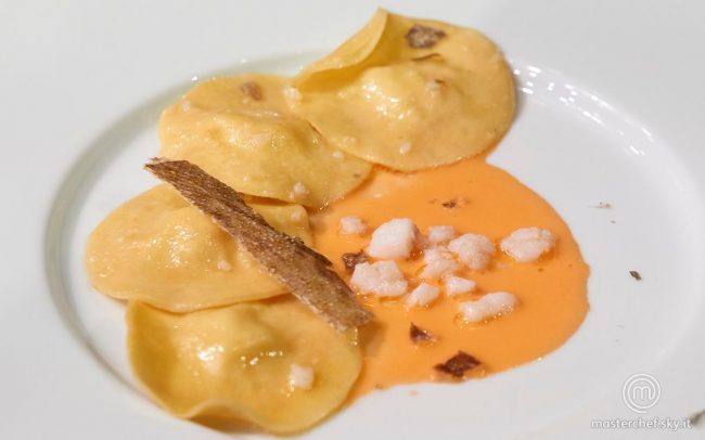 Crostino con baccalà mantecato, sarde in saor e moeche fritte